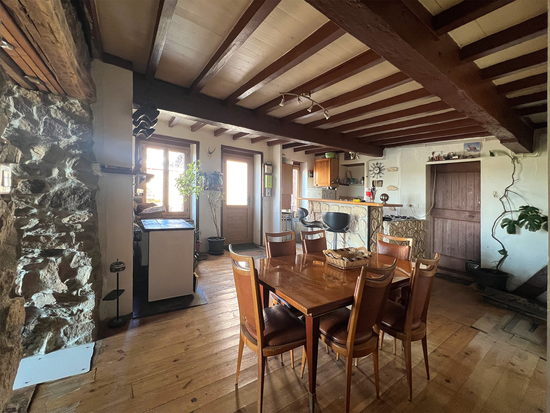 • Cachet de l’ancien : murs en pierre et poutres apparentes ✨
